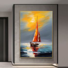 Hand oil painting Wall Art Canvas Prints Painting Artwork Picture Abstract Knife Painting Red Seascape Home Decoration (size: 50X70cm)